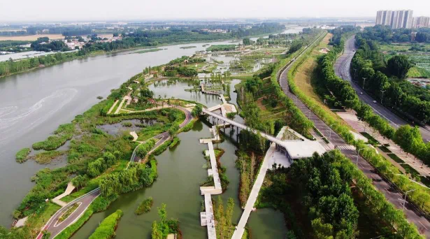 “兖州泗河观光线(右堤)”精品自驾路线从北向南全长18.7公里,从龙湖湿地出发,沿着便捷的堤顶路一路向南,途经青莲公园、大禹公园、马桥湿地、花海彩田、牛楼小镇,线路充分利用沿岸景观,让游客在欣赏泗河两岸美景的同时,也能够了解兖州的历史文化知识,充分展示了“一步一风景,一景一故事”。