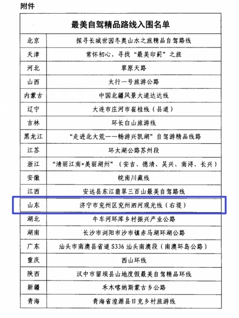 近日,交通运输部发布“行在乡村 游在路上”最美自驾精品入围路线,“济宁市兖州区兖州泗河观光线(右堤)”在135条路线中脱颖而出,入围交通运输部“行在乡村 游在路上”最美自驾精品路线,也是全省唯一一个入围路线。